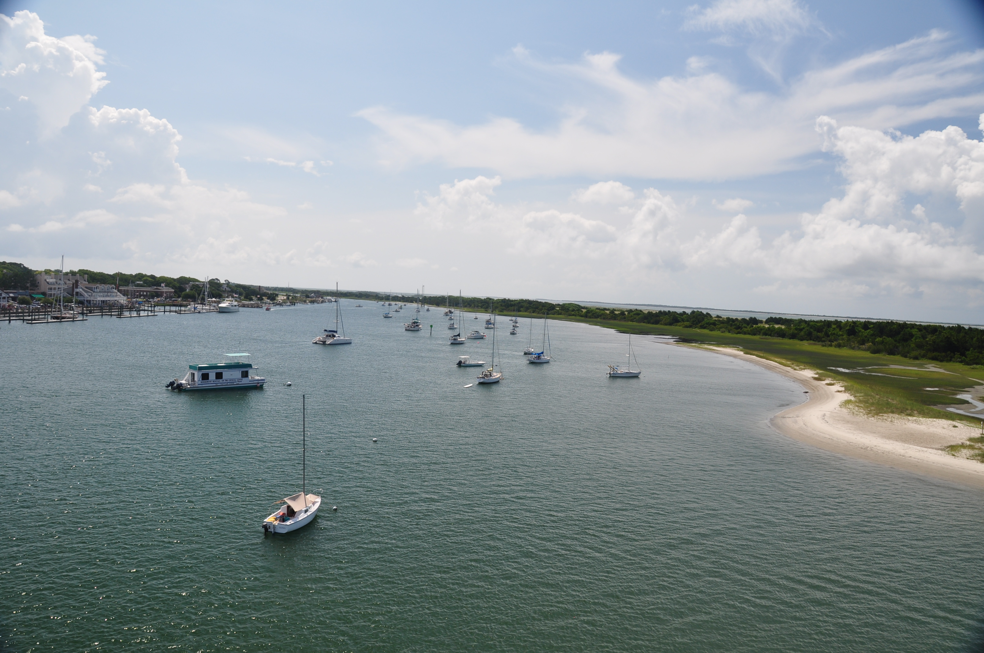 Next stop was Beaufort, North Carolina (pronounced Bow-fort, not to be confused with Beaufort, SC which is pronounced Byoo-fort). Our auto pilot had failed on the way to Charleston and we were going “offshore” (into the Atlantic) for our next leg, so we were in for a 24-hour sail of hand steering. Unfortunately for us, we encountered a large thunderstorm parked right off of Cape Fear. (This experience is described in the blog post “Weather You Like It Or Not”.)