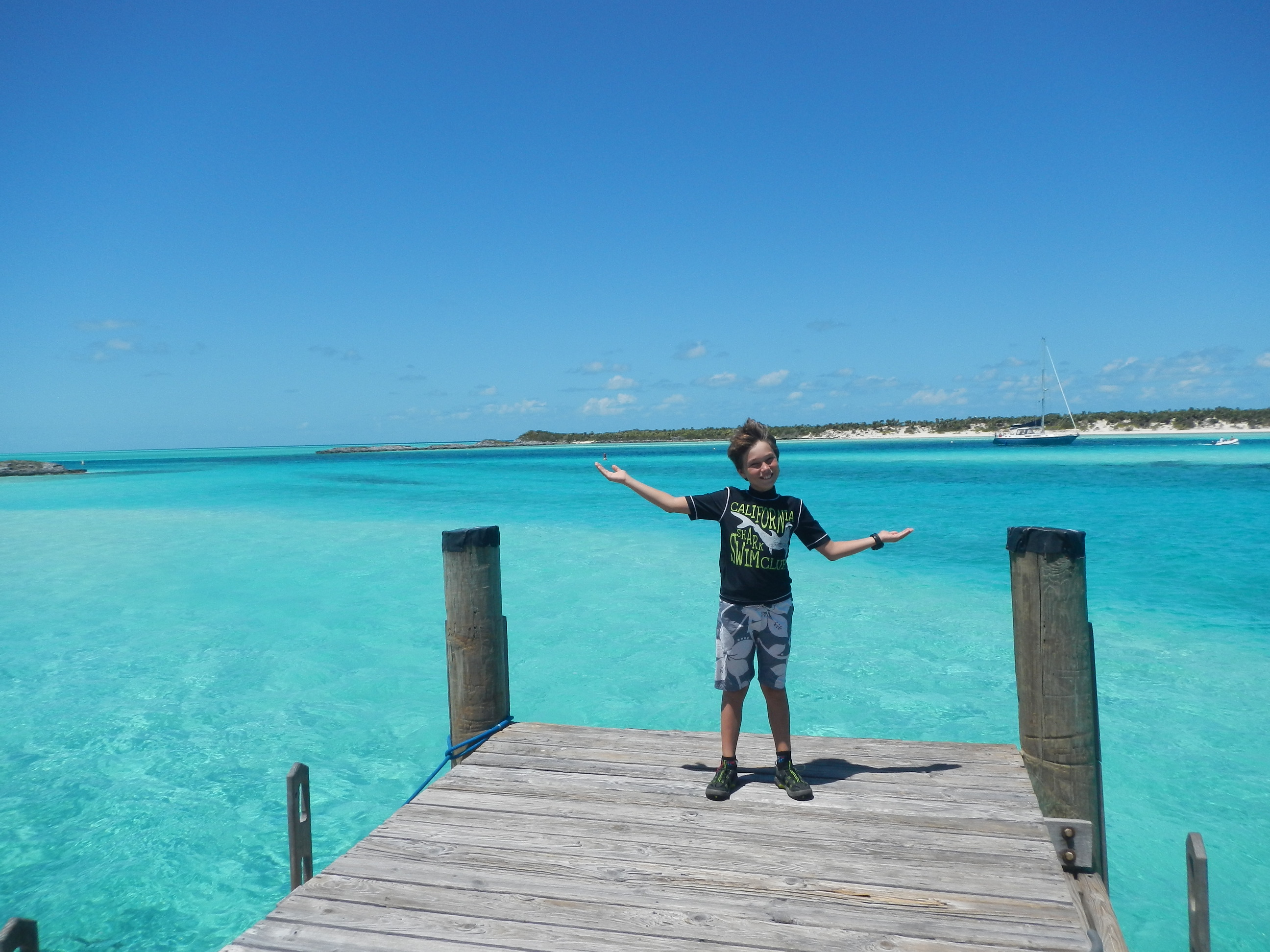 Searching for more “kid boats” (so that Dante could have a playdate), we took an overnight passage to Georgetown, Great Exuma. While we arrived in time for the all-island regatta for the Bahamians, no kid boats were to be found. Instead, we paid Dante $50 to help wax the boat. Aren’t we nice parents? Georgetown, normally a tiny quiet town, was bursting with excitement over the annual regatta. They set up food stalls along the viewing area (where I tried my first conch fritters) and ended the week-long event with a great parade down the small main street. The boats came through the anchorage area on the way to the race course and we had a great front row view of the sloops racing across the waters.